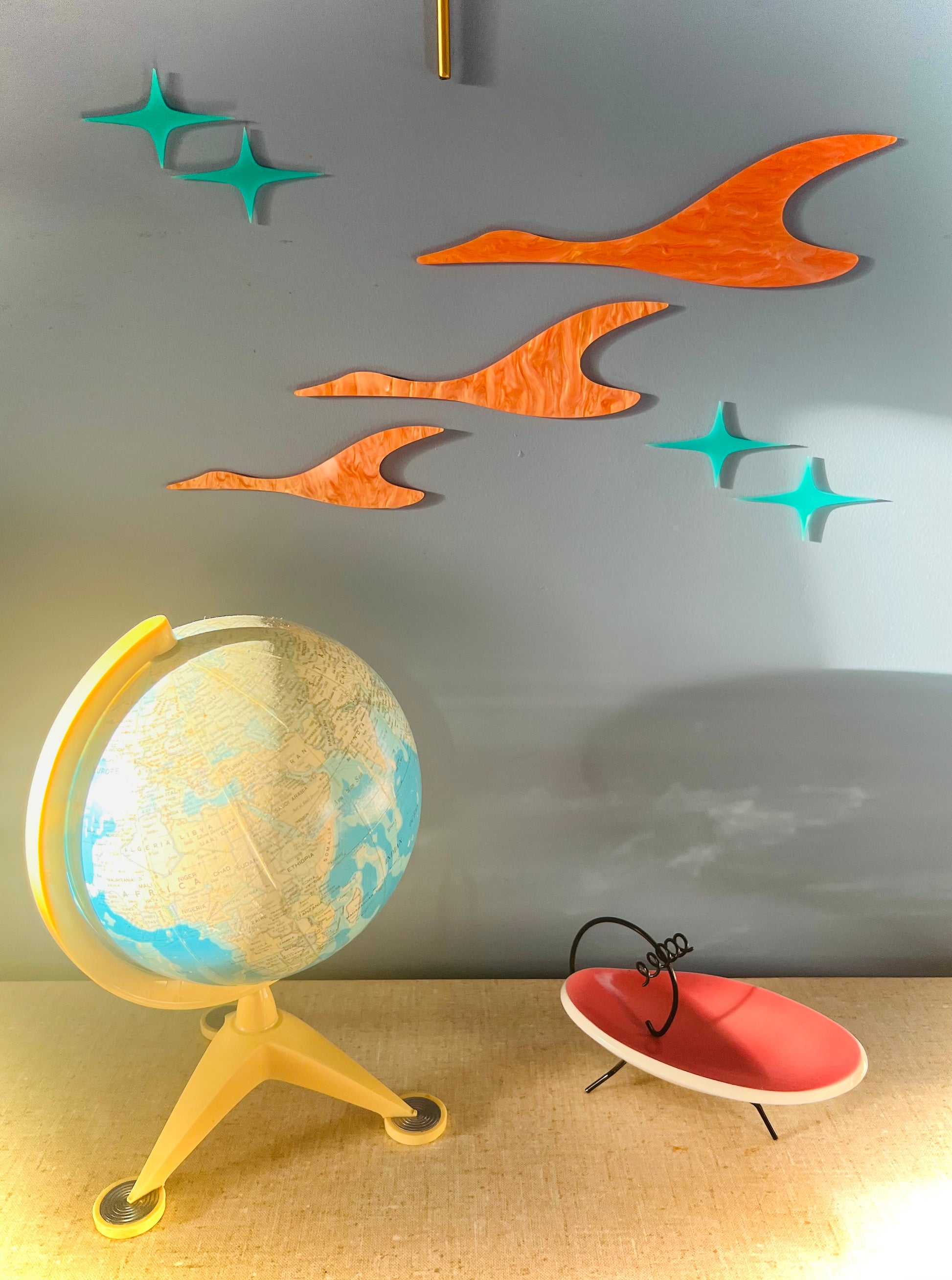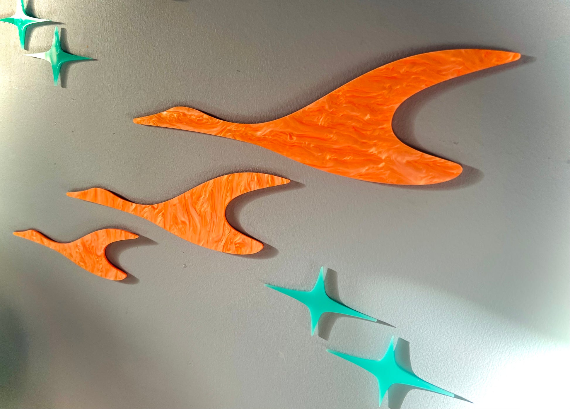 Abstract Flying Ducks, Set of 3 With Elongated Diamonds