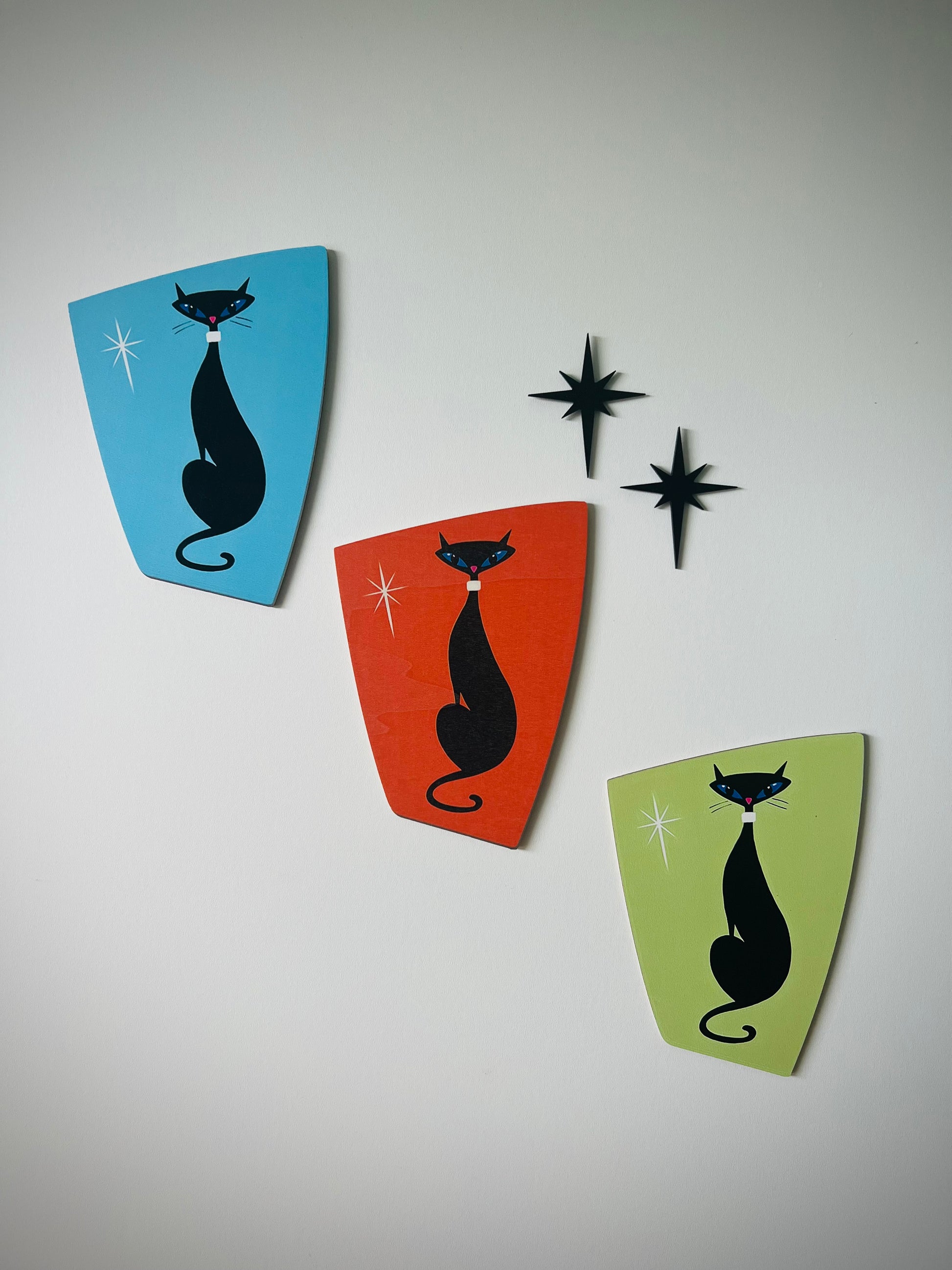 Atomic Age Cats. 3 Pieces With 2 Black Atomic Nodes. FREE SHIPPING.