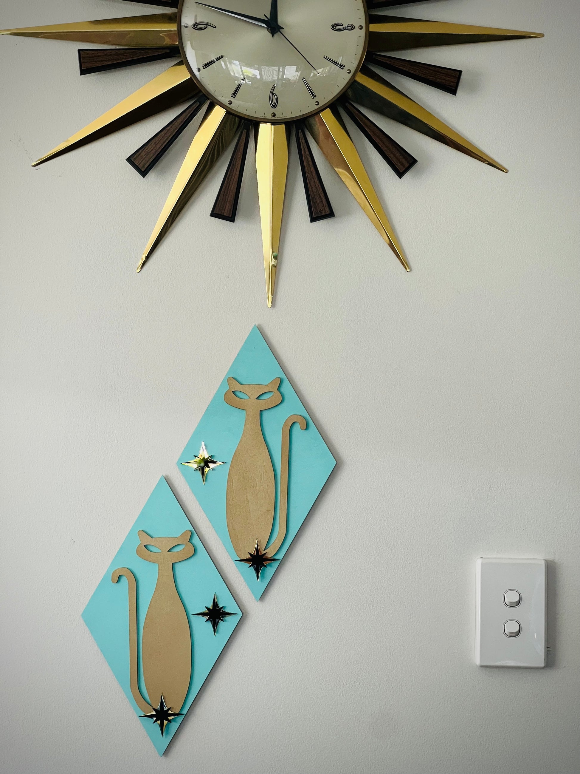 Pair of Gold Diamond Kitties FREE SHIPPING WITHIN AUSTRALIA.